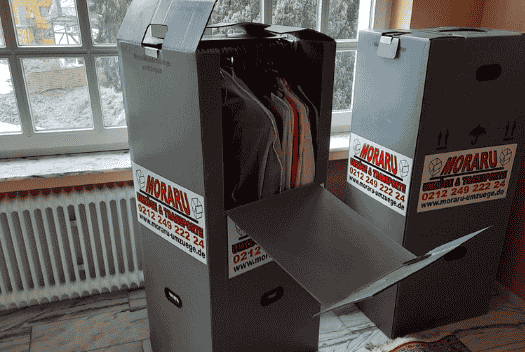 Praktische Kleiderboxen für den sicheren Transport Ihrer Kleidung auf Bügeln – knitterfrei und bequem.